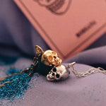 This skull-shaped necklace encapsulates the enigmatic concept of time and mortality, acting as an amulet that connects us to the essence of life and the search for its meaning.