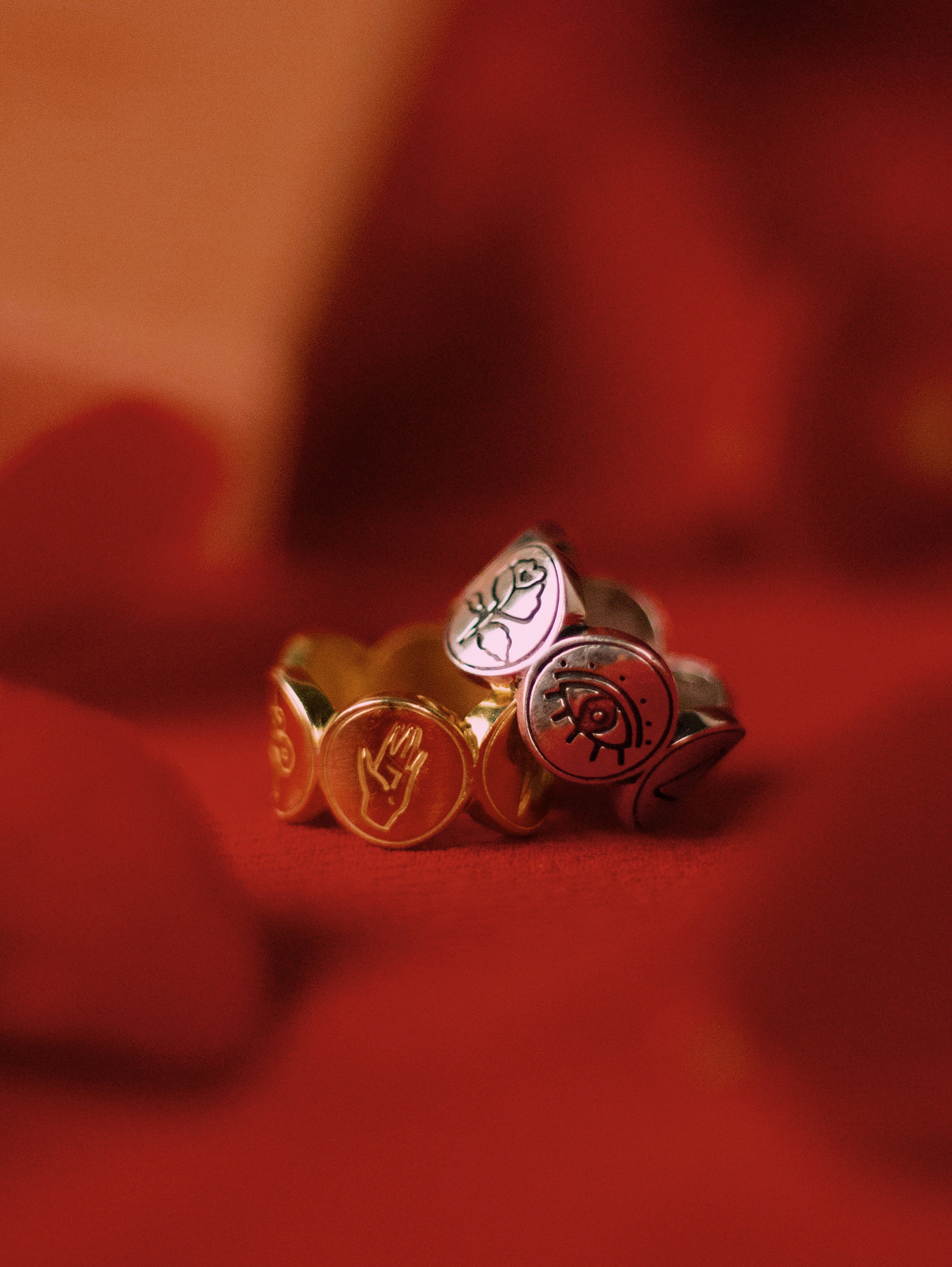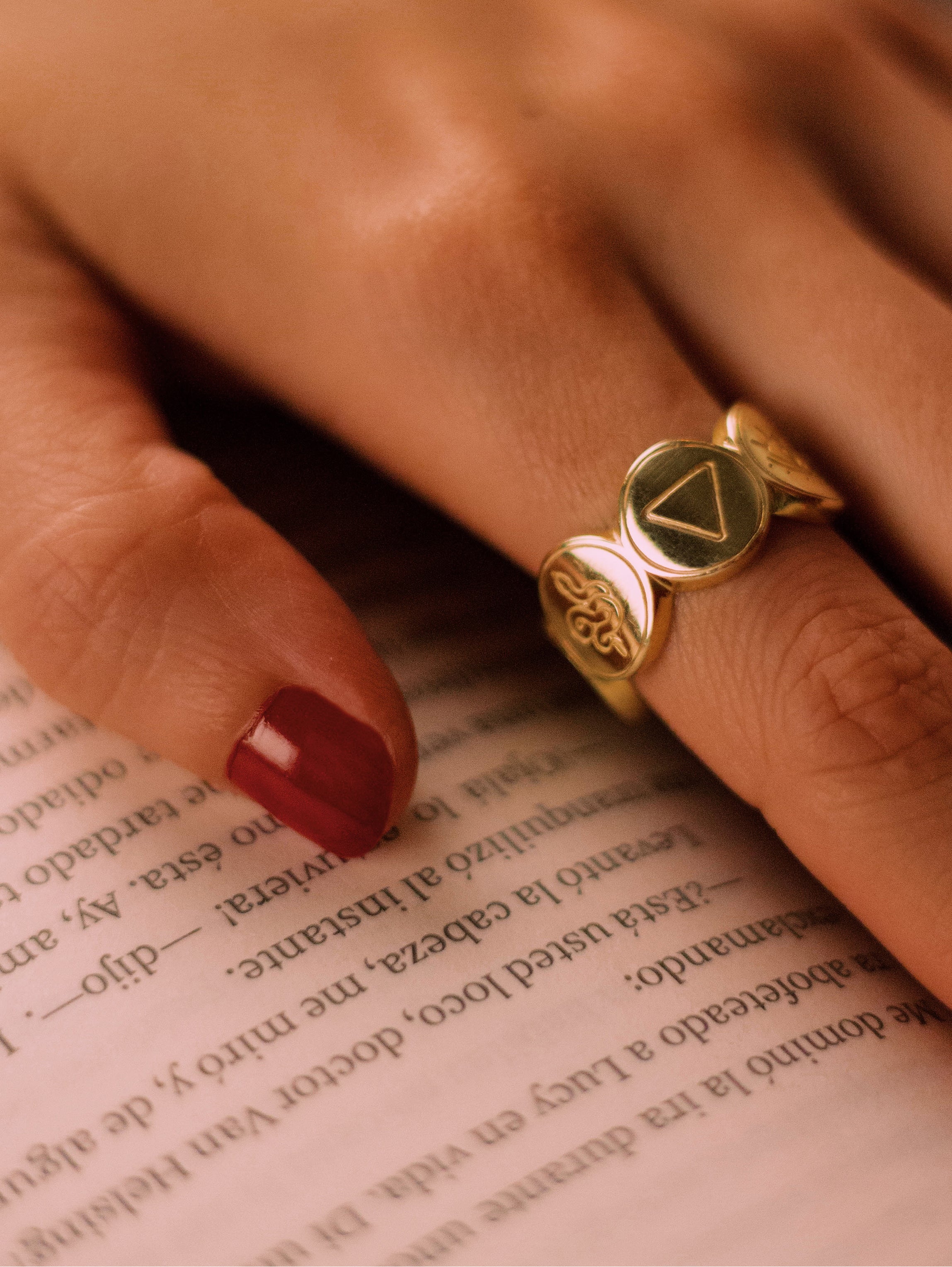 El anillo "Abracadabra" está inspirado en un antiguo y poderoso conjuro de origen misterioso, diseñado para alejar las malas vibraciones y proteger tu energía.