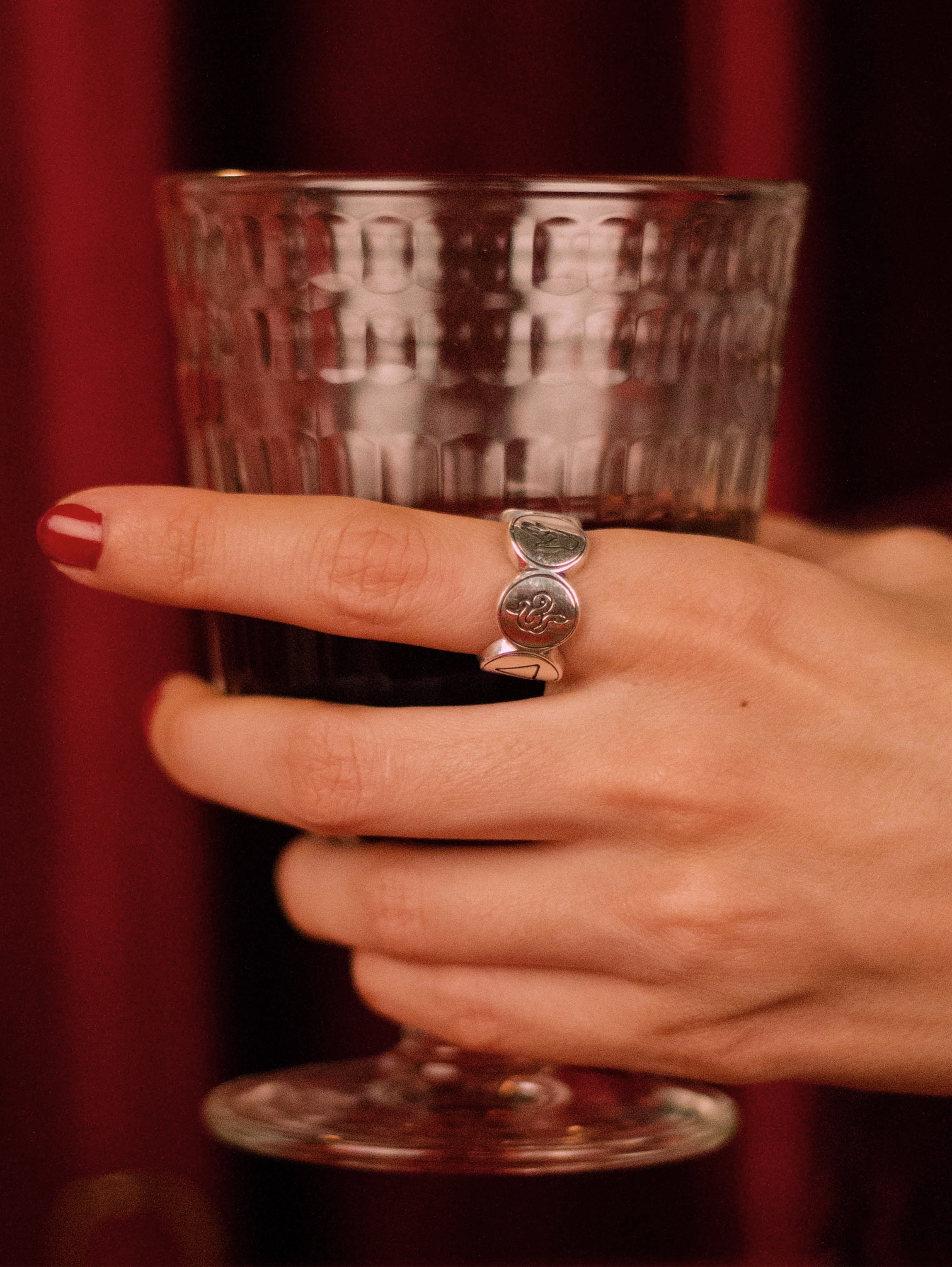 - Diseño: El anillo presenta seis circunferencias, cada una grabada con un símbolo único: The Snake, The Rose, The Dagger, The Hand y The Evil Eye.