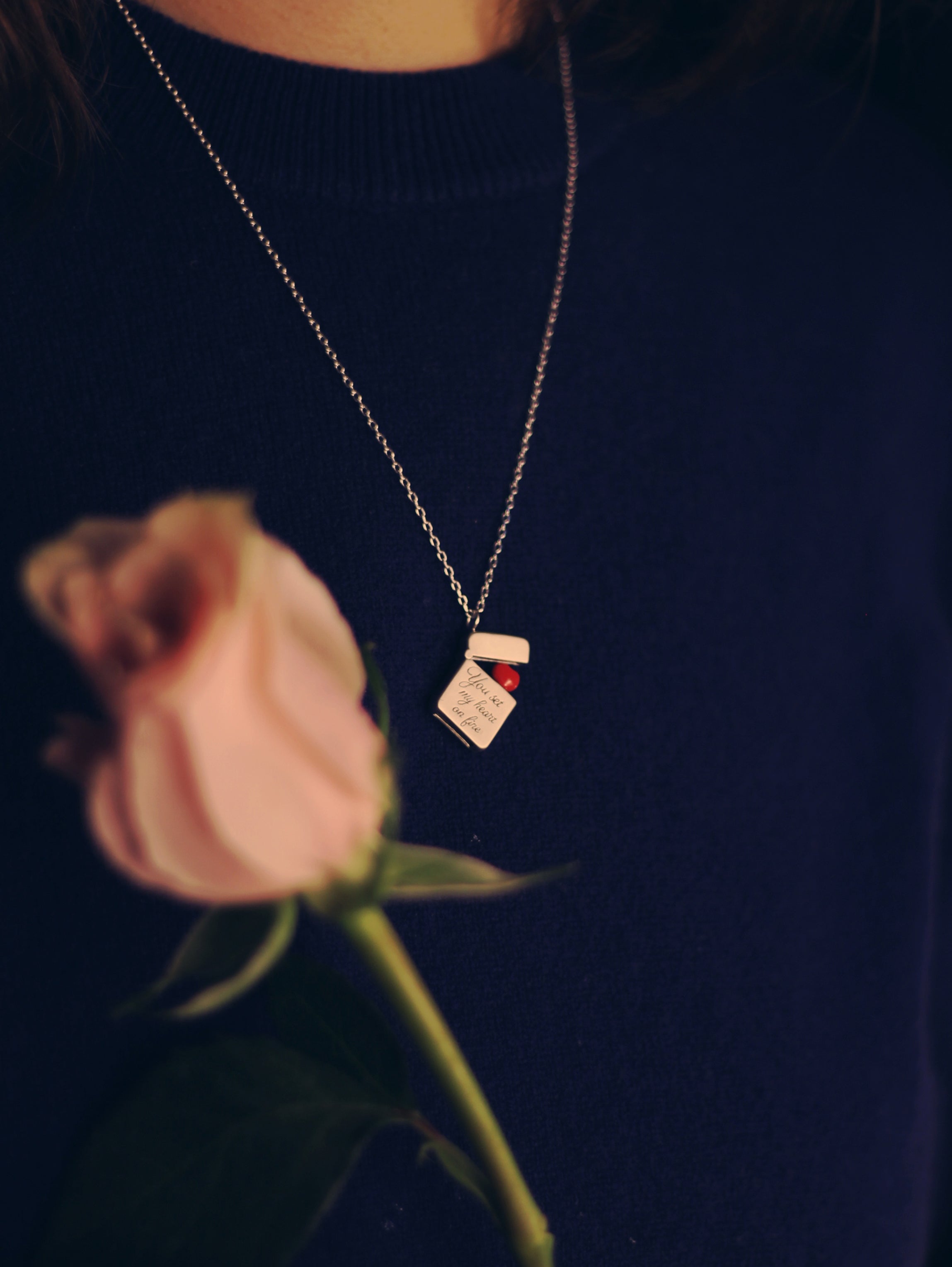 Un collar que rinde homenaje a las grandes historias de amor. Inspirado en los susurros de la música romántica, combina la nostalgia de los 60 con el poder de una declaración de amor eterno. Una pieza única y artesanal que evoca la pasión y la magia de las canciones que nos han hecho vibrar, un tributo a las historias de amor que perduran en el tiempo.