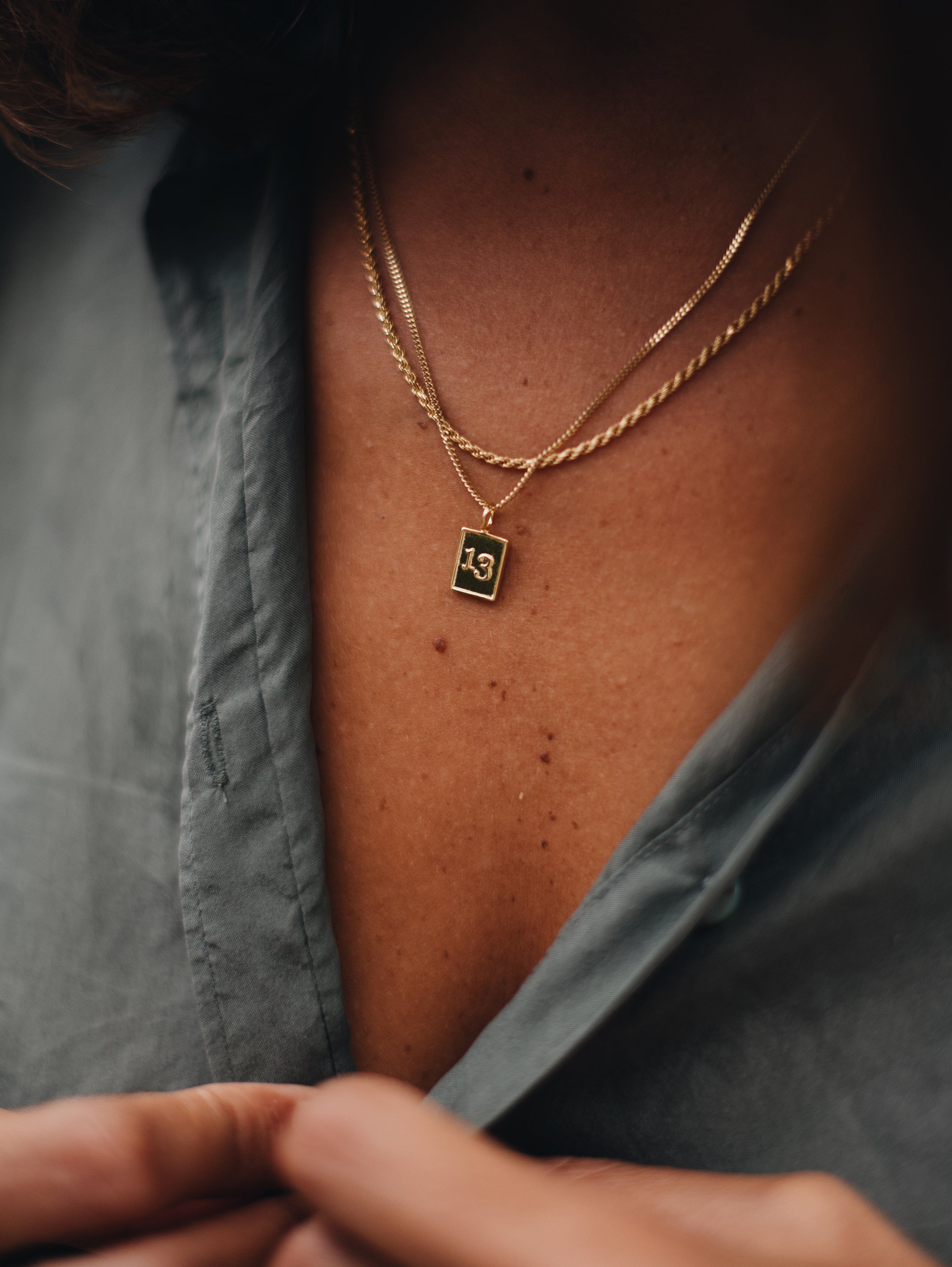 Este collar con el número 13 inscrito es un poderoso amuleto cargado de simbolismo. El número 13, asociado al arcano de la Muerte en el tarot, no representa un final, sino un cambio profundo y transformador. En el ámbito espiritual, la "muerte" simboliza la transición y el renacimiento, marcando el comienzo de una nueva etapa llena de crecimiento personal.