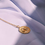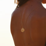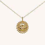 Este collar con forma de sol es un poderoso símbolo de lo divino, lo invisible y lo eterno. El Sol, fuente de energía sanadora y vida, es la estrella más influyente sobre la Tierra, irradiando armonía y reflejando nuestra luz interior. La alternancia del Sol con la Luna simboliza la dualidad del día y la noche, lo eterno y lo perecedero.
