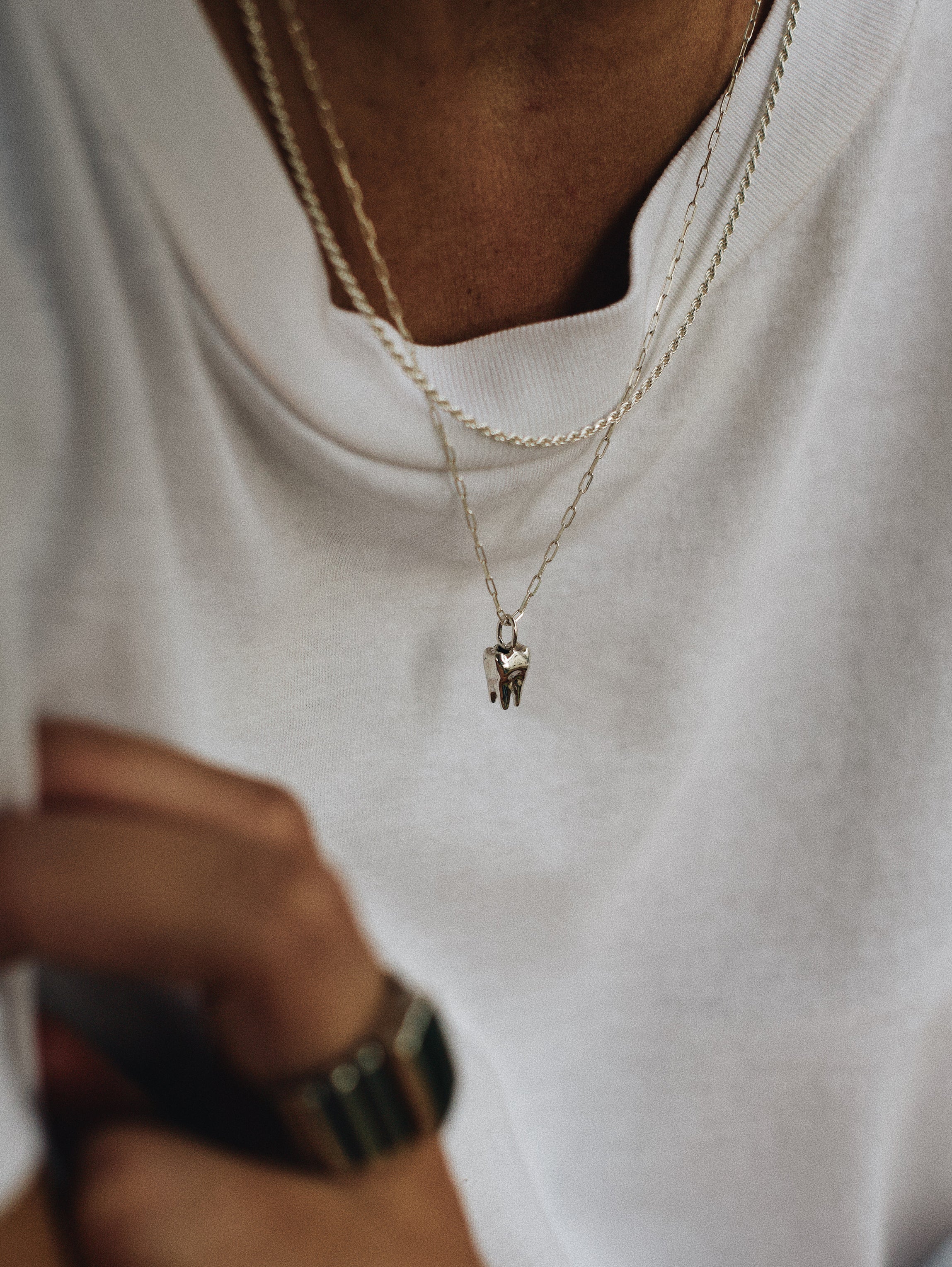 El diente ha sido un símbolo poderoso a lo largo de la historia, representando la conexión entre el tiempo y la eternidad. Desde la antigüedad, la práctica de llevar dientes como collares ha sido una forma de trascender el tiempo, de recordar tanto la mortalidad como la permanencia del alma.