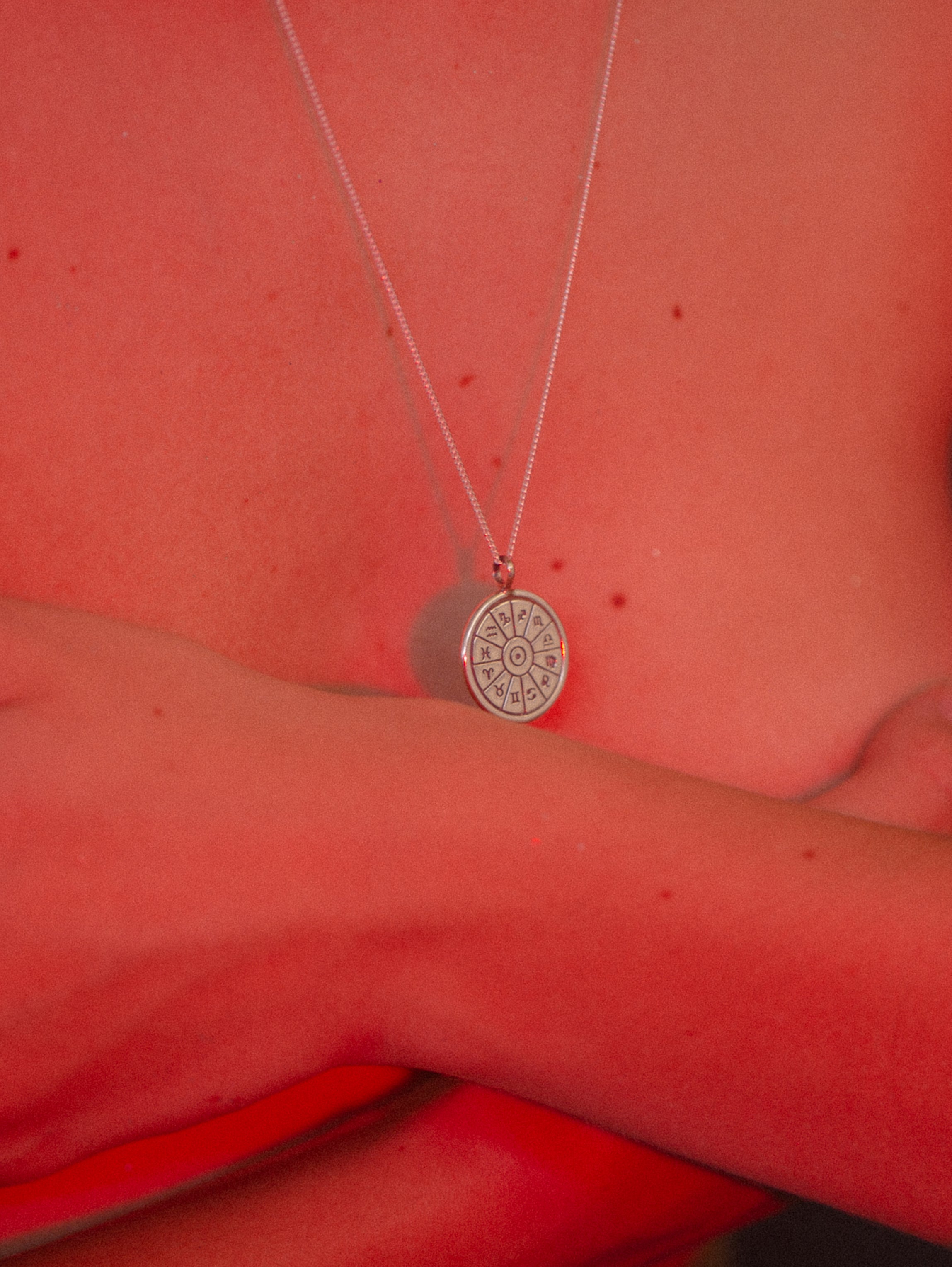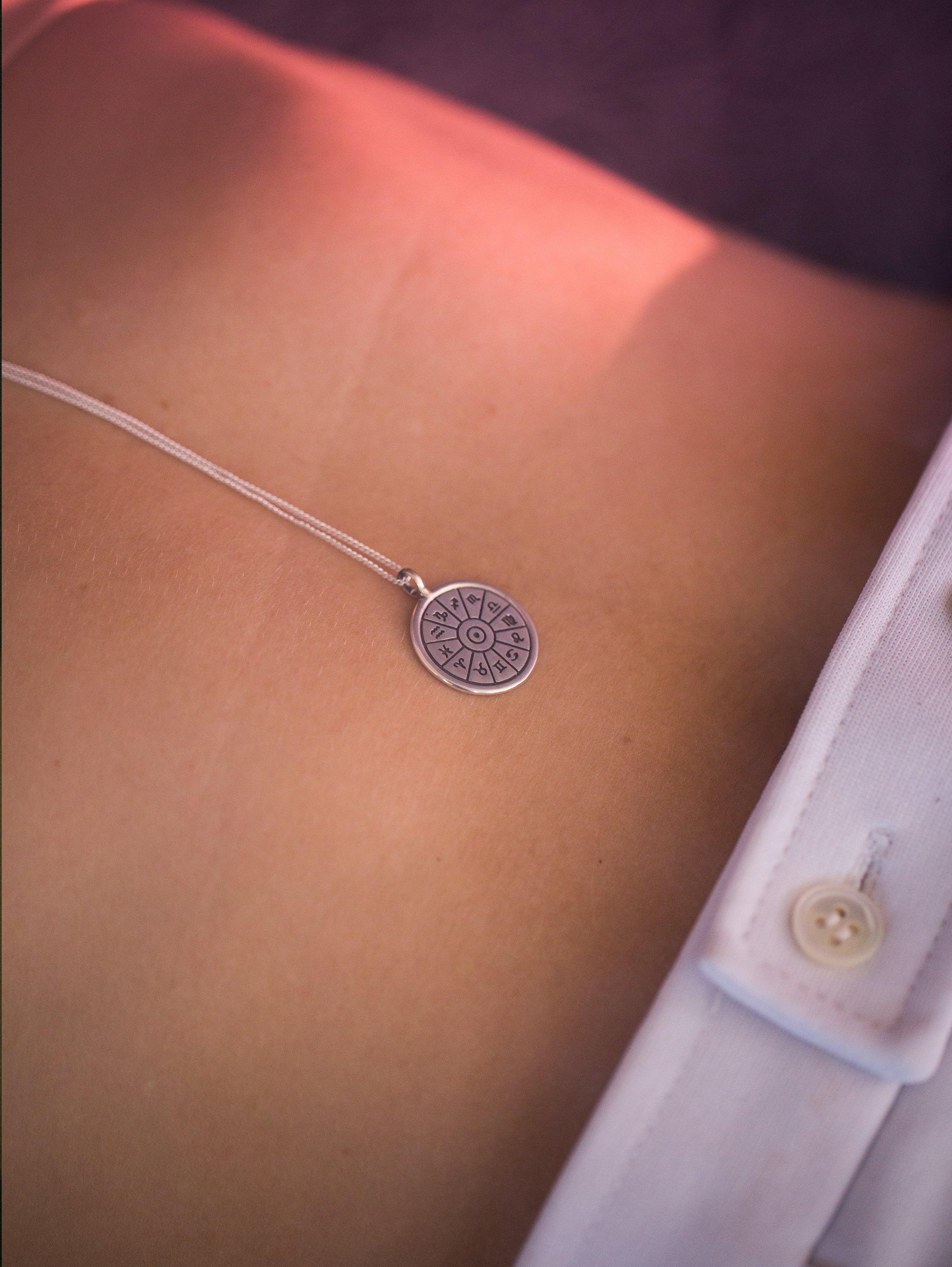 Dicen que estamos hechos de polvo de estrellas, reflejo de lo que ocurre en el cosmos. Este collar, inspirado en la energía de los signos zodiacales y los elementos de la naturaleza—tierra, mar, viento y fuego—representa el equilibrio perfecto entre lo espiritual y lo terrenal. Un amuleto diseñado para alinear tus energías y ayudarte a encontrar tu camino, el reencuentro con nuestra luz interna y todo aquello que hemos olvidado.
